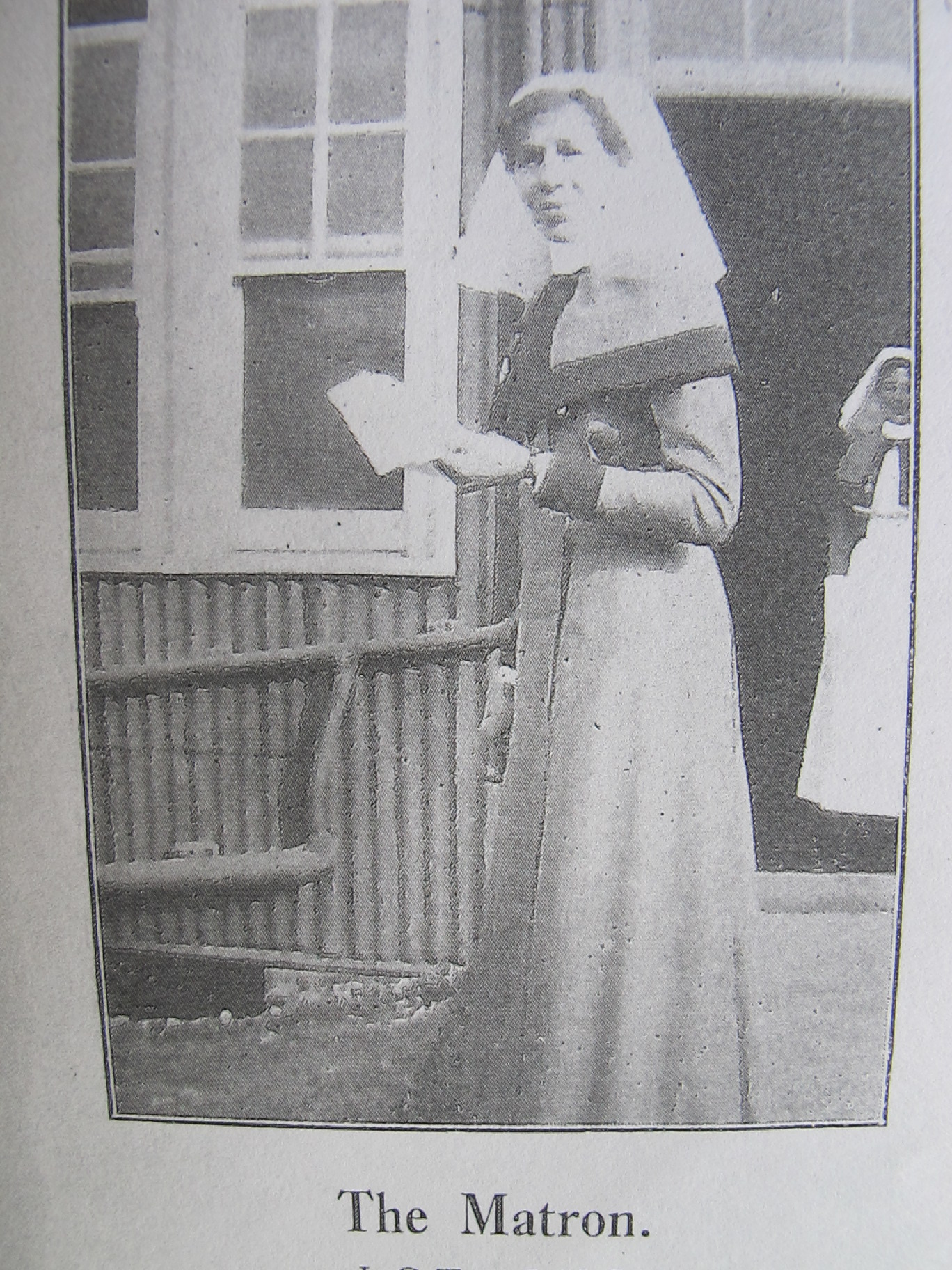 One ‘Miss Caruthers’, who, we’re told, ‘is a descendent of Scotsmen’, but born ‘on the English side of the border within sight of the beautiful Cumbrian lakes and mountains’. Miss Caruthers, a member of QAIMNS, spent her career in hospitals in Huddersfield, various London hospitals, Netley and Dartford before arriving in Brighton where, according to ‘Pavilion Blues’, ‘she is now devoting herself, making it home from home for us’.